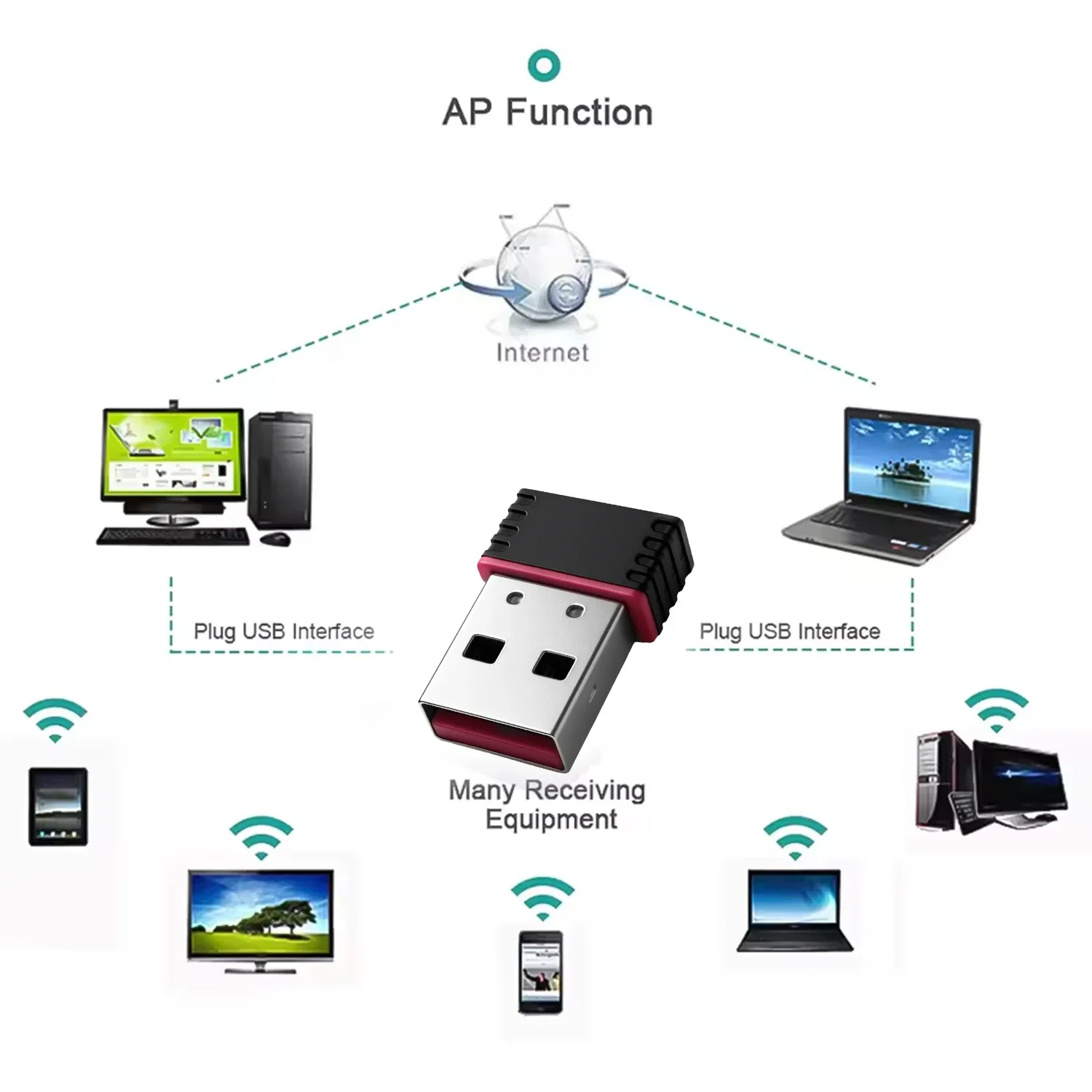 Dimensions: Wireless small network card 1.5*0.6*1.9cm, adapter 1.75*1.94*0.78cm / 2.62*1.46*0.72cm