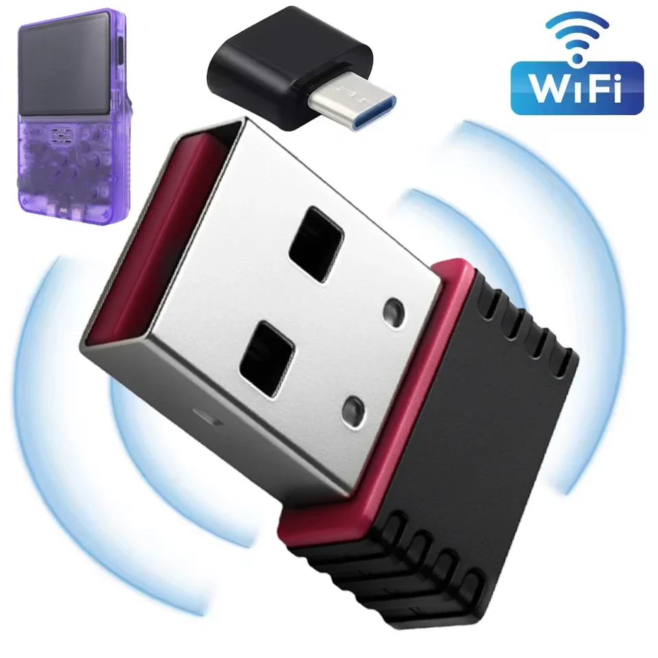 Mini USB WiFi Dongle RTL8188 Wireless Network Cards for R36S R36H Game Consoles with Type C OTG Adapter Portable WiFi Receiver