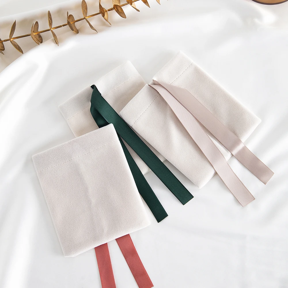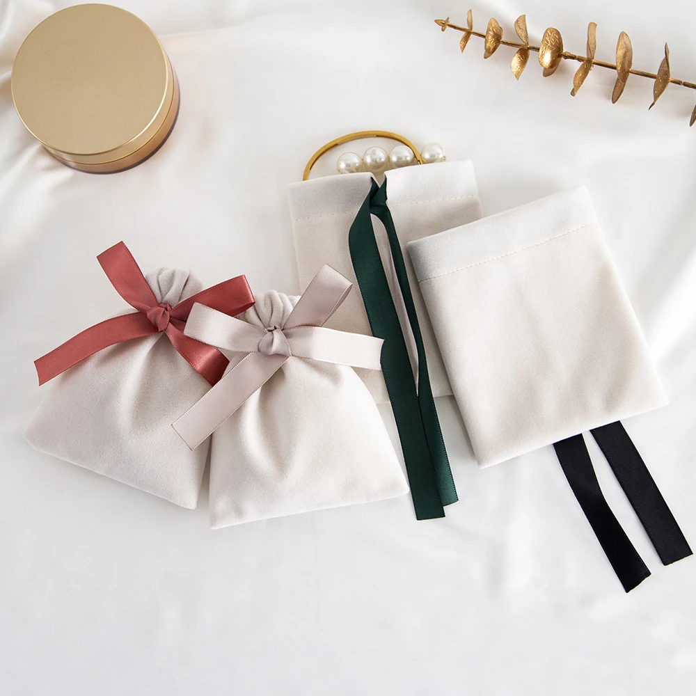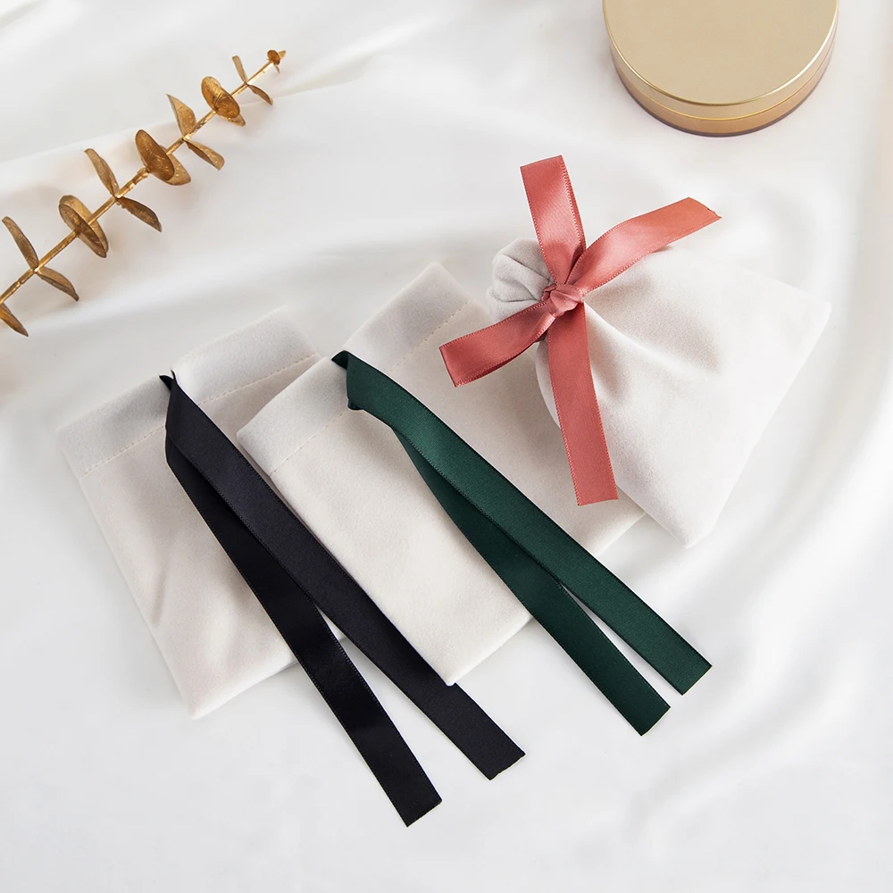 10Pcs X NO LOGO Thick Velvet Bags with Ribbon